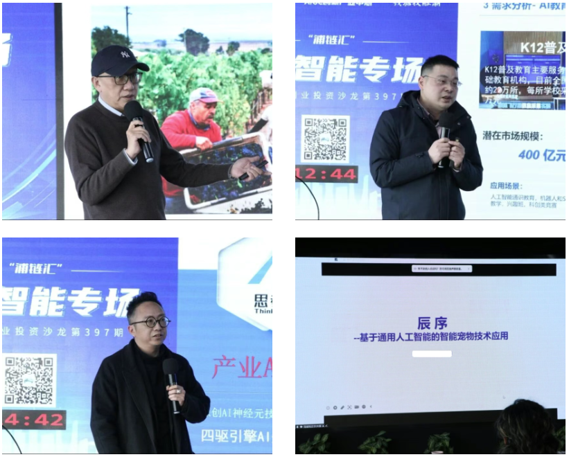 《人工智能采摘机器人》《智能硬件一站式原型开发平台》《AI产业矩阵智脑—社区Al微综合体》《基于通用人工智能的智能宠物技术应用》4个项目进行了精彩路演。