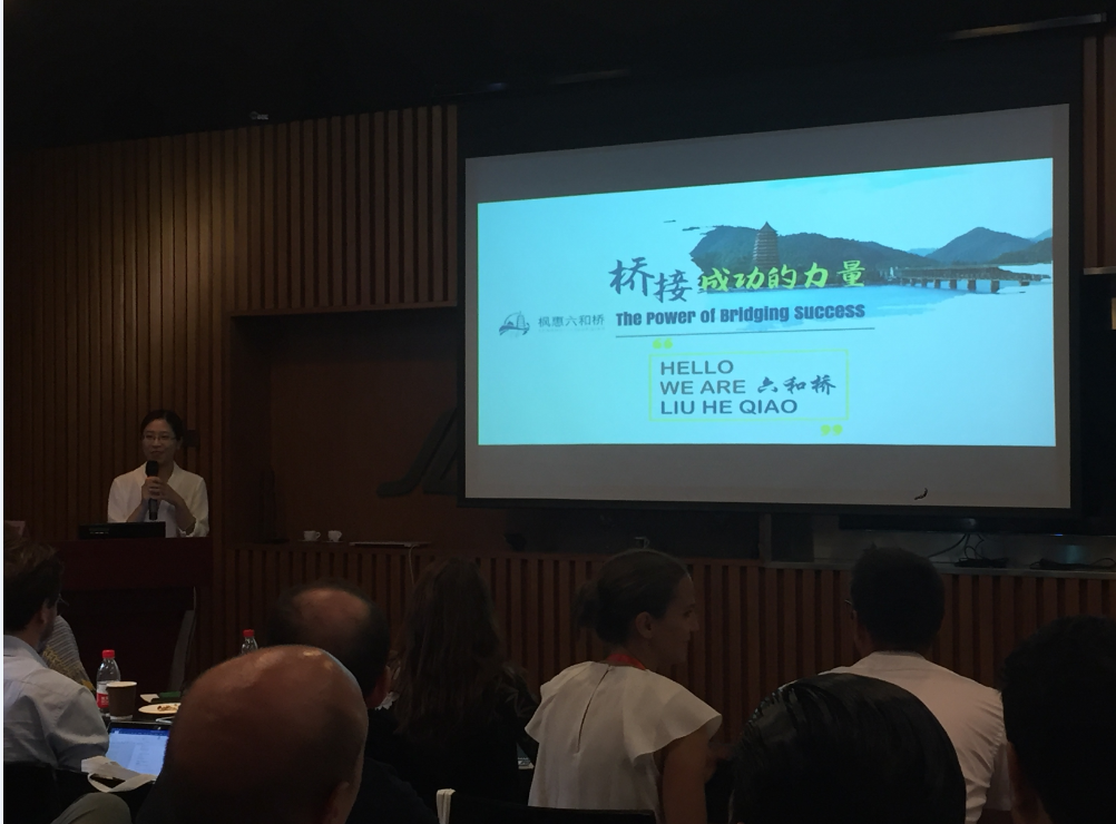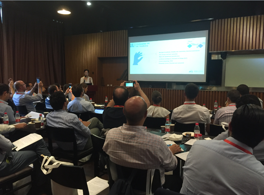 qy球友会QY国际部马夕喃为外宾介绍qy球友会QY孵化体系和投资偏好