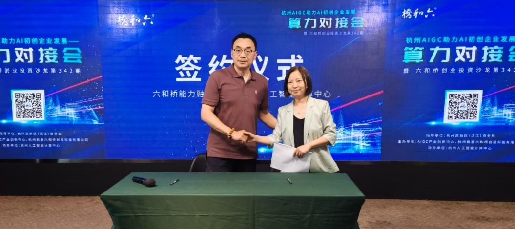 qy球友会QY能力融合平台肖总就AIGC产业集群建设情况进行了详细介绍并与杭州人工智能计算中心任总签约了战略合作协议。