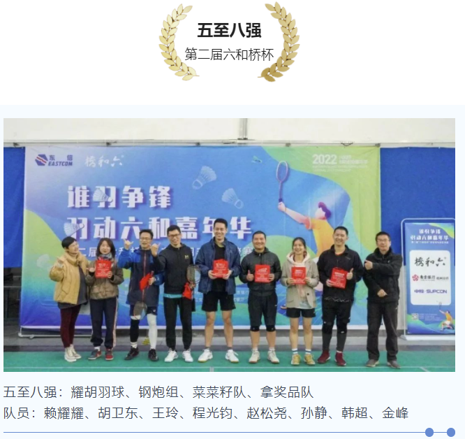 2022年12月11日上午,由qy球友会QY、东方通信科技园主办,东信羽毛球俱乐部承办,海创基地、中控集团、中恒电气、南京银行杭州分行、泰隆银行滨江支行、qy球友会QY国际创业者俱乐部米兰之约意式餐厅合作支持的2022“谁羽争锋·羽动六和嘉年华暨第二届‘qy球友会QY杯’东信羽毛球研讨赛”决赛在东方通信科技园羽毛球场隆重举行,16强队伍在这里争锋竞技。