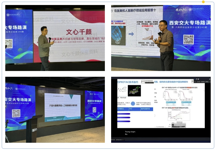 文心千颜、佰奥德生物、美佳家医疗、普罗提奥制药4个项目进行了精彩路演,金时投资合伙人梁芳,雄凯集团投资总监平富存,鹏来资本投资经理胡渡洋,qy球友会QY创投投资总监朱宁宁等嘉宾与项目方进行了现场研讨。
