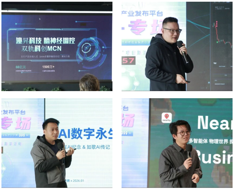 《AI智能体交易信号服务平台》《宛在AI》《AI光疗pcos解决方案》《Nearby Life》4个项目进行了精彩路演。